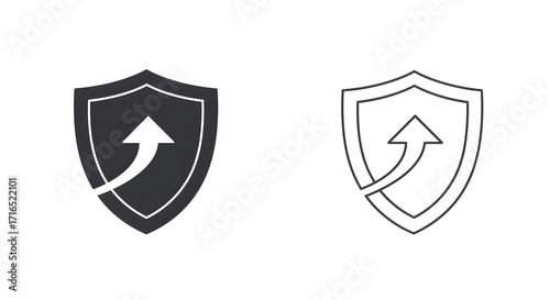 Flat vector icon of shield with upward arrow overlay