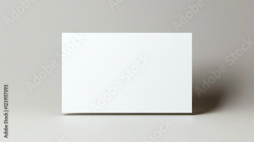 Floating blank white card illuminated by gentle window light on smooth grey backdrop