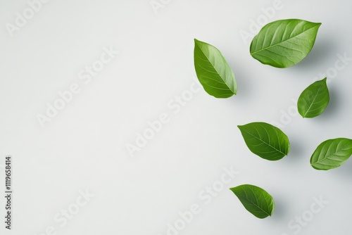Floating green leaves representing freshness and nature in a minimalist setting