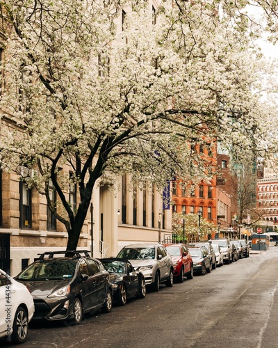 Flowering trees on Stuyvesant Street, in the East Village, Manhattan, New York City