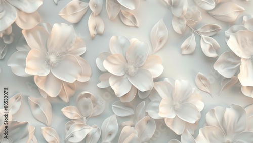Flowers on the old white wall background, digital wall tiles or wallpaper design with a cement damask pattern.