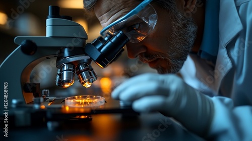 Focused Scientist Using a Microscope in a Laboratory