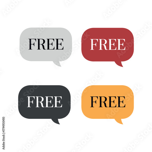 Four speech bubbles with the word free displayed in black text on a White/PNG background isolated graphic vector, illustration, artwork