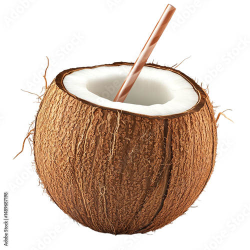 Fresh coconut with straw ready to drink tropical beverage refreshment summer thirst quencher