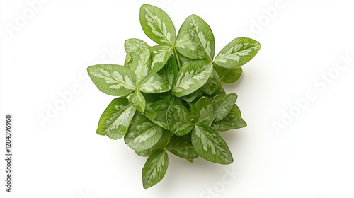Fresh Green Mint Leaves Gathered Together with a Pure White Background