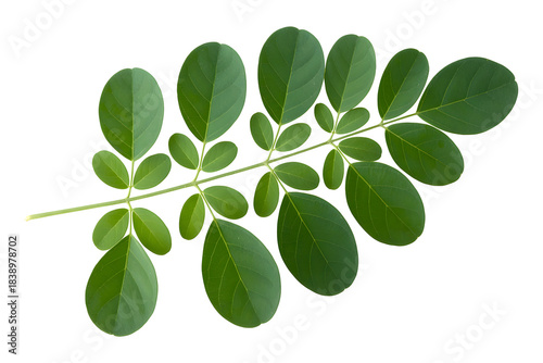 Fresh green moringa leaves and stem isolated on transparent background