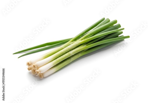 Fresh green onions bunch with white and green stems and roots