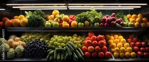 Fresh Produce Display: Supermarket, Fruits, Vegetables, Abundant