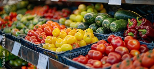 Fresh vegetable product at supermarket. Grocery shopping market. Generative AI technology.