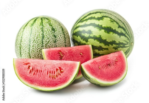 Fresh Watermelon and Honeydew Melon Slices on White Background Still Life