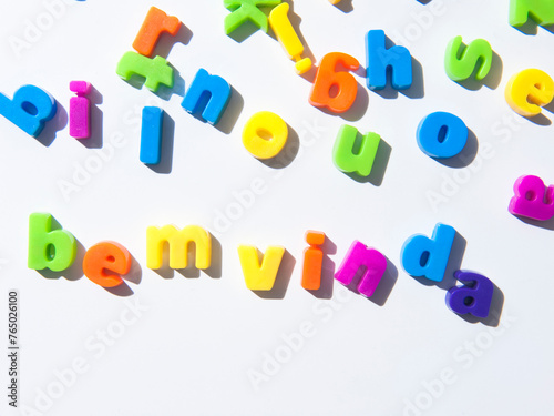 Fridge magnet letters spell " Bem vinda " welcome in Portuguese