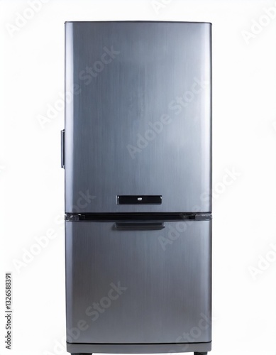 Front View of a Sleek Gray Single-Door Fridge Isolated on White Background