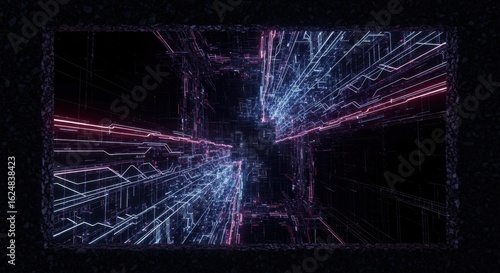 Futuristic Digital Data Network Visualization with Neon Lights and Technological Lines