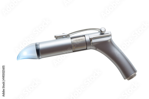 Futuristic Healing: A Silver Medical Device Illuminates with Blue Light, Promising Advanced Healthcare Solutions on a Clean Black Backdrop.