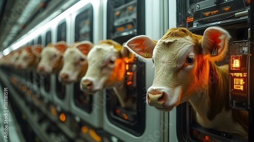 Futuristic livestock farming with robotic feeding systems and advanced monitoring devices