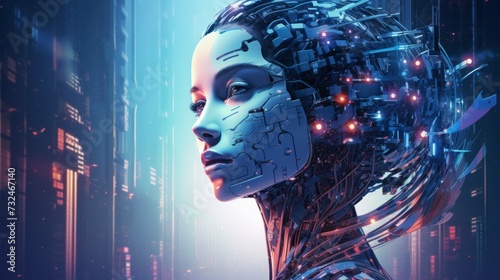 Futuristic technology concept: abstract background of glowing digital circuit patterns and futuristic interface elements