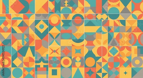 Geometric Patterned Abstract Mosaic with Retro Color Palette and Modern Design Elements