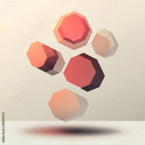 Geometric shapes in warm tones floating gracefully against a soft, neutral backdrop.