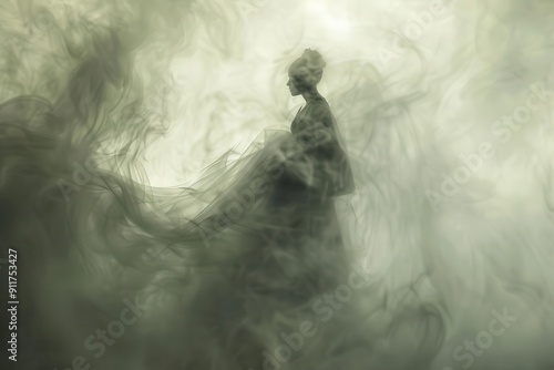 ghostly apparition of a woman emerging from swirling mist ethereal and mysterious with soft glowing edges and translucent features