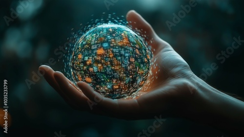 Giant Hand Pushing Down on a Globe of Data