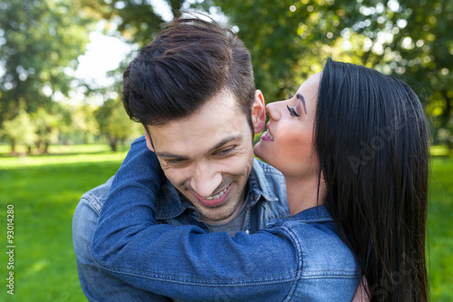 girl whispers her boyfriend a secret