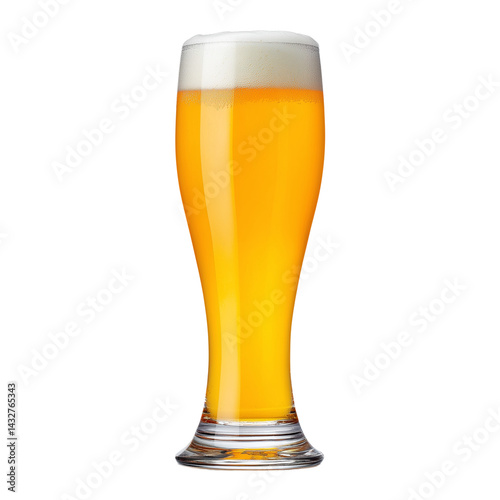 Glass of wheat beer with foam isolated on white background
