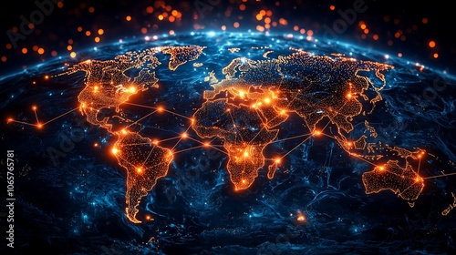 Global Digital Landscape with Orange and Blue Technology Network.Generative AI