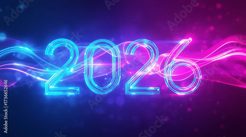 Glowing Neon 2026 with Vibrant Light Trails on Dark Futuristic Background