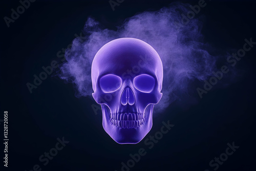 Glowing purple skull enveloped in ethereal purple smoke against a dark background