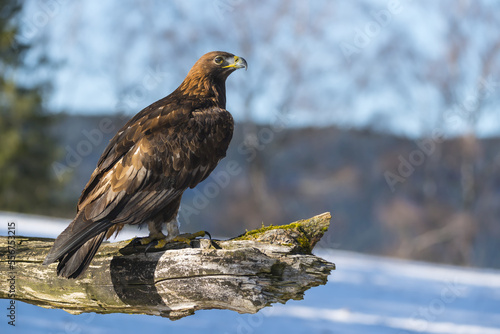 Golden Eagle (Aquila chrysaetos) in winter, Bohemian Forest; Czech Republic
