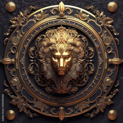 Golden Lion Sculpture in Ornate Frame