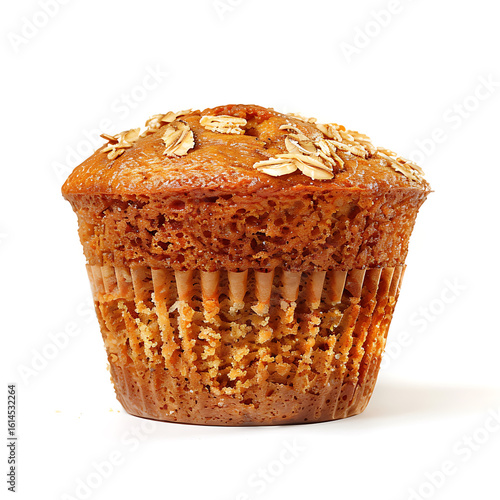 Golden Oatmeal Muffin with Crumbly Texture Isolated on White Background