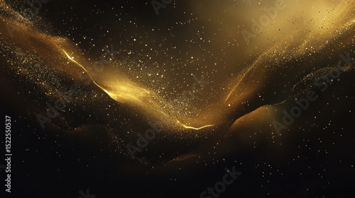 Golden particles flow across a dark background.