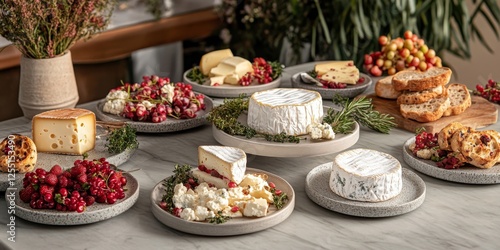 Gourmet Cheese Platter. Festive Cheeseboard With Variety Of Cheese, Fruits And Decoration