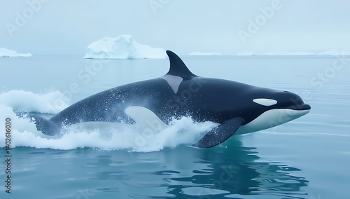 Graceful Orca Amidst Ice and Snowy Landscape