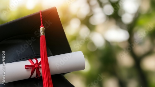Graduation cap and diploma symbolize academic achievement and future aspirations.