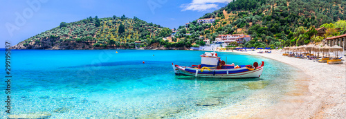 Greece. Idyllic beautiful beaches of Samos island - beautiful Limnionas bay with crystal sea.