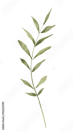 Green branch leaves, hand drawing, digital botanical illustration.