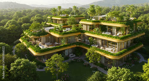 Green building, Sustainable architecture, Luxury apartments, Luxurious Eco-Friendly Apartment Building in Tropical Forest