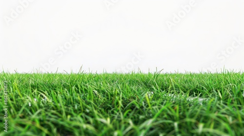 Green grass field on white backdrop background. Generative AI