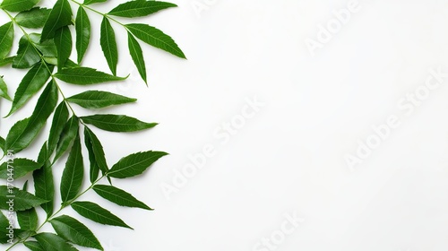 Green leaves on white background minimalist design