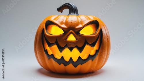 Grinning Jack o' Lantern pumpkin with an evil expression, isolated on a white background.