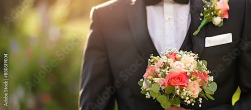 Groom Holding a Bouquet of Flowers