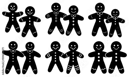 Group of smiling gingerbread men with bow ties on white background black