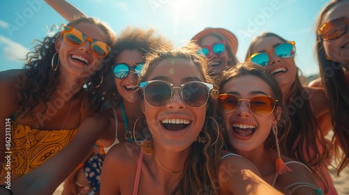 Group Portrait of Smiling Positive Colorful Friends Having Fun Together Outdoors