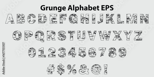 Grungy Distressed Alphabet & Numbers Vector Set. Textured Capital Letters, Numerals, Symbols in Rough Grunge Style EPS. Perfect for Creative Typography & Posters