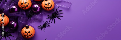 Halloween background with pumpkins and tarantulas