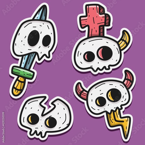 hand drawn skull tattoo doodle sticker