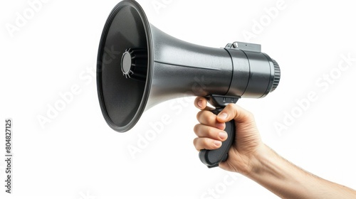 hand hold megaphone, isolated white background