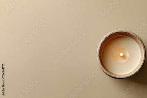 Handmade soy candle in a earthy pot arrangement.